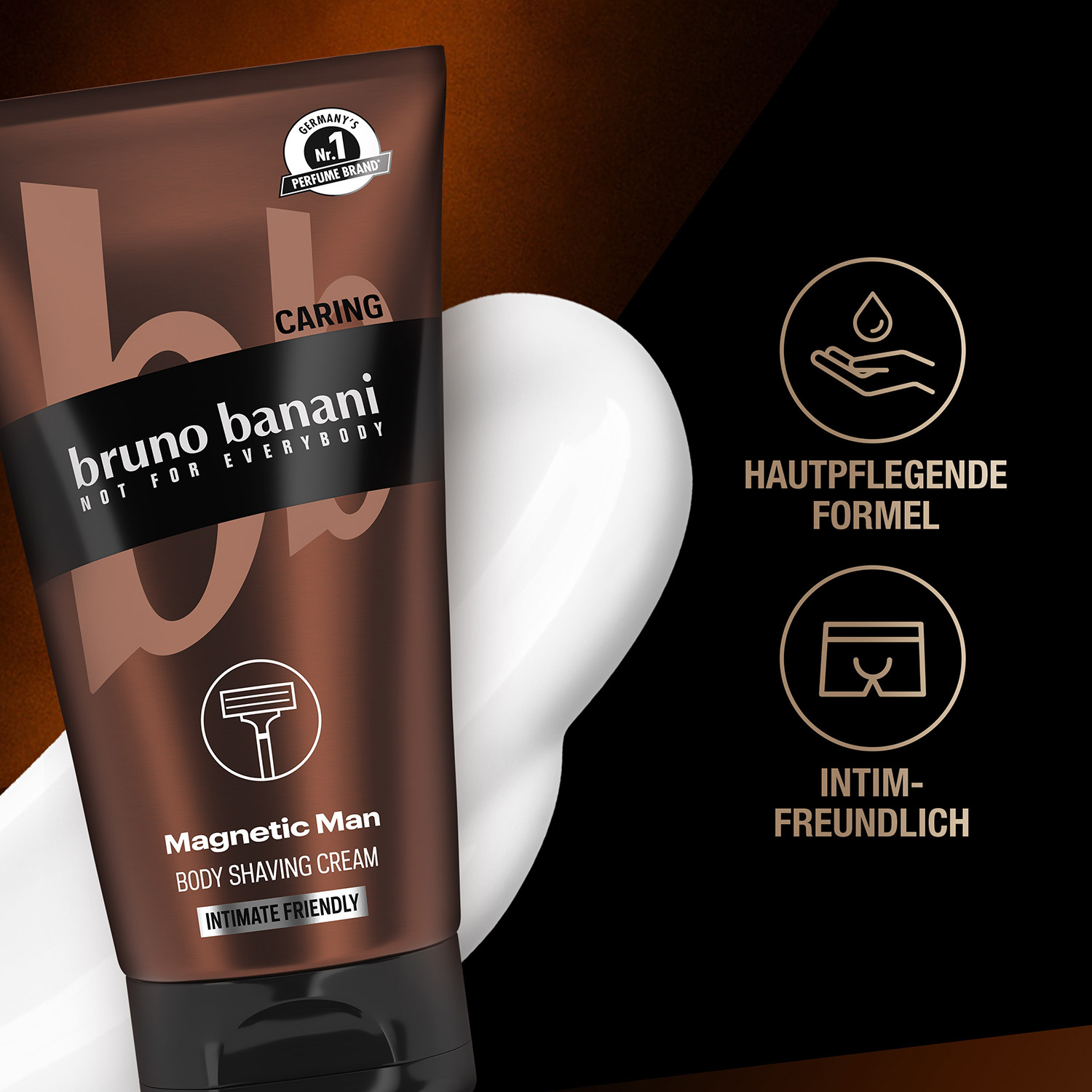 So zart kann männlich sein: Die Bruno Banani Body Shaving Cream Magnetic Man pflegt vor, während und nach der Rasur und verleiht unwiderstehlich glatte Haut.Die vielseitige 3-in-1-Rasiercreme ist mit Babasuöl und Glycerin angereichert und eignet sich für Körper, Kopfhaut und Intimbereich.