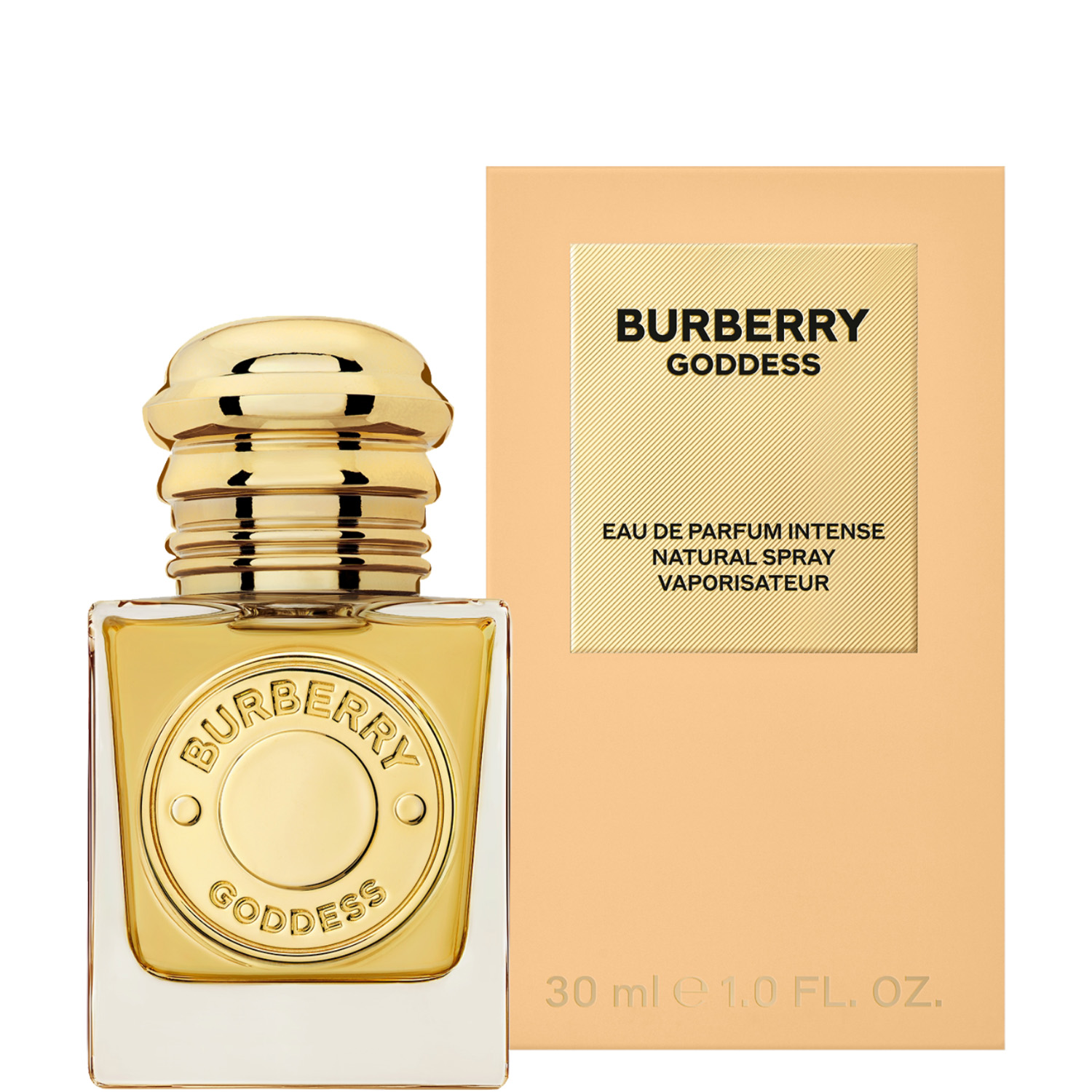 Inspiriert von den Farben des Sonnenuntergangs, ist Burberry Goddess Eau de Parfum Intense in einem eckigen, mit einem goldenen Medaillon verzierten Flakon enthalten, der mit einem leichten, ambrierten Duft gefüllt ist. Die Verpackung in dunklem Beige mit einem von Gabardine inspirierten goldenen Etikett ist eine Anspielung auf die Tradition der Marke. Burberry Goddess Eau de Parfum Intense wurde zum Nachfüllen entwickelt. Die Nachfüllpackung ist separat erhältlich.